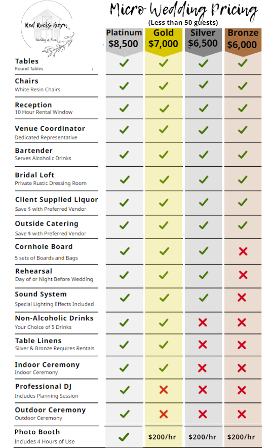 How many guests can we invite for a micro wedding at Red Rocks Barn?
